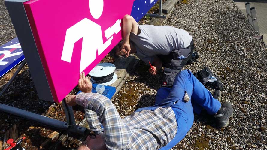Aus diesem Grund verbauen wir als Leuchtmittel in unseren Lichtwerbeanlagen und Buchstaben fast ausschließlich nur noch LED- Module. Etwas höher im Anschaffungspreis, aber dieser hat macht sicht innerhalb kürzester Zeit bezahlt gemacht!