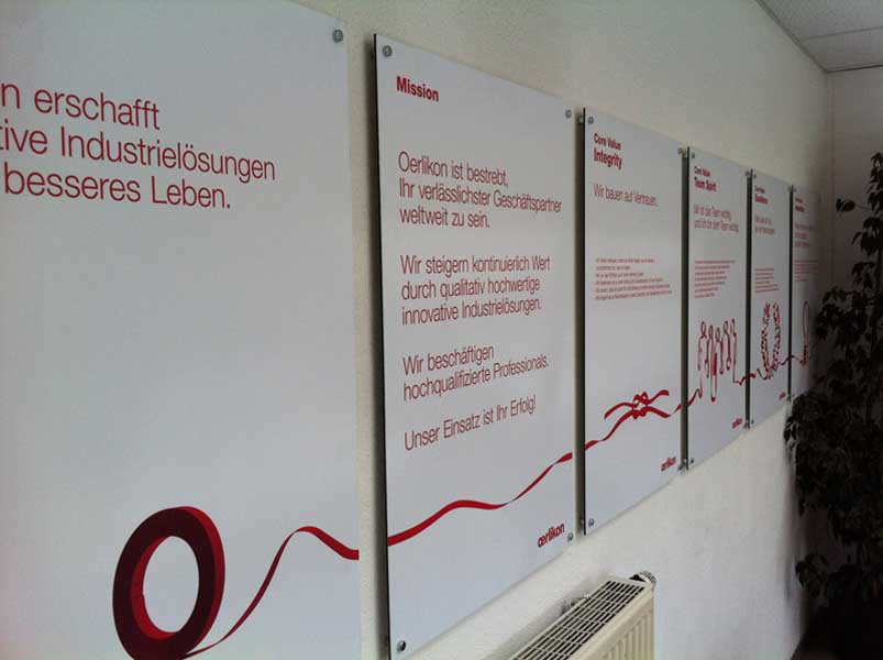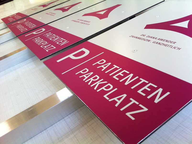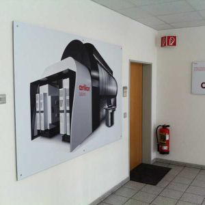 Alu-Dibond ist eine besonders stabile und biegsteife Sandwichplatte aus zwei 0,3mm starken Aluminiumdeckschichten und einem schwarzen Kern aus Polyäthylen. Alu-Dibond ist witterungsbeständig und kann im Innen- und Außenbereich eingesetzt werden. (Highlight: Alu-Dibond Butlerfinish mit gebürsteter Oberfläche in gold oder silber)