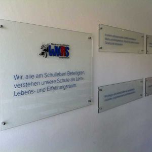 Plexiglas Gravuschilder - Diese Schilder sind graviert (Konturen) und werden indirekt mit LEDs beleuchtet. Das Motive ist vollflächig-graviert und der Kontur-Gravierte Texte kann wahlweise mit Folie hinterlegt werden. An den gravierten Konturen bricht sich das Licht der indirekten LED Beleuchtung und somit wird ein spezieller Leuchteffekt hervorgerufen. Auch toll bei größeren Firmenschilder. Die Lichteinbringung erfolt mit einer LED- Leiste von einer Seite.